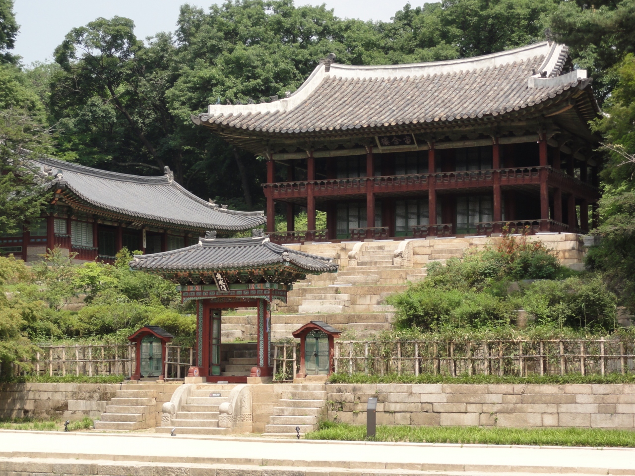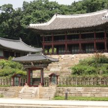 世界文化遺産・昌徳宮秘苑(後苑)、芙蓉池の斜面にある立派な建物が王立図書館‘宙合楼’。現在の建物は1777年李朝第22代・正祖が建立。下の階が書庫、上の階が読書をする図書館として利用されました。