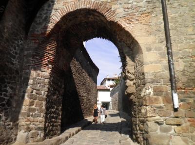 旧市街、サボルナ通りを北上、トラキア人の城塞跡手前右に入る。古い城塞門=ヒサール・キャピアが見える。