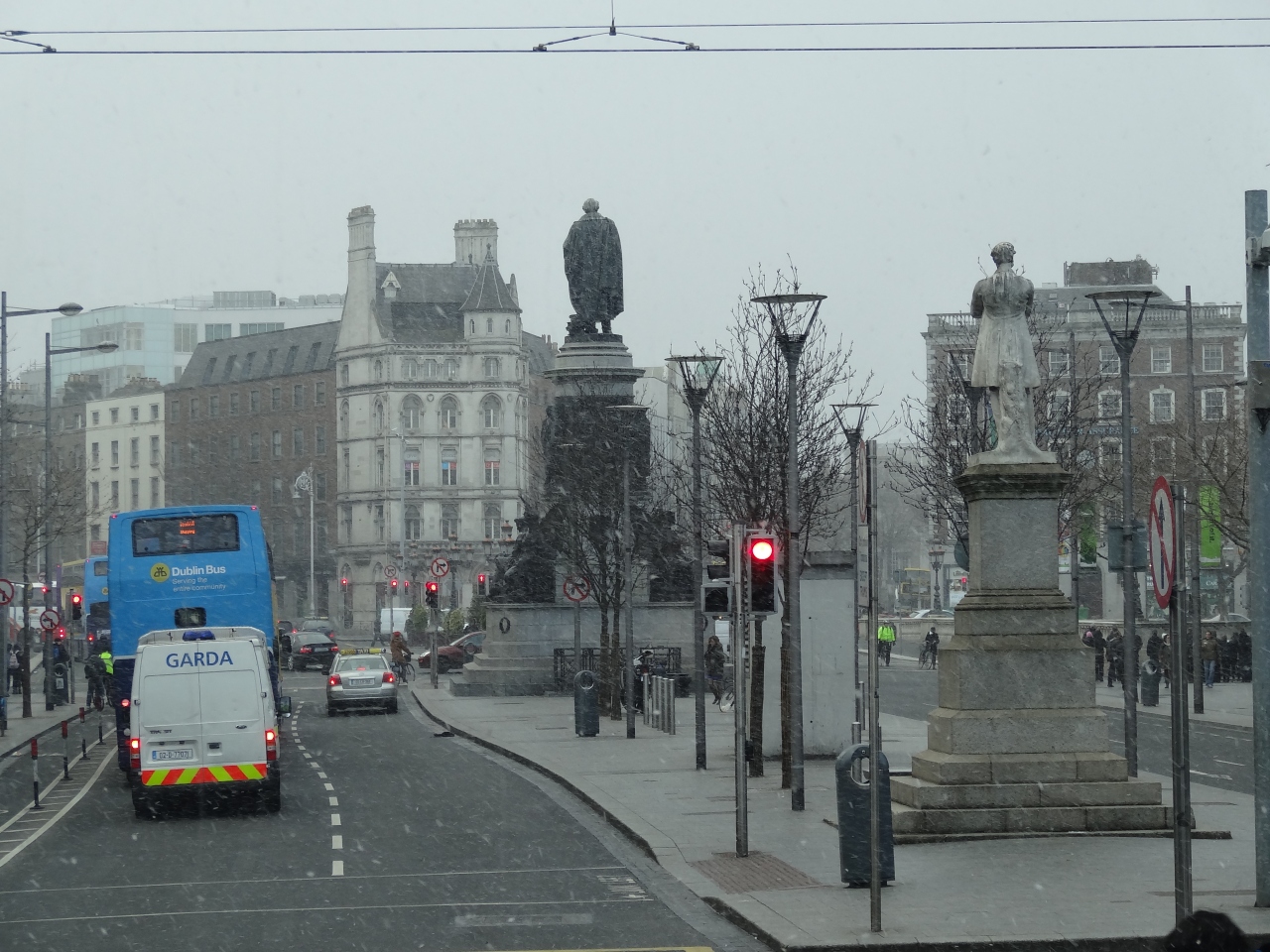 目抜き通りです。町の真ん中を歩いてトリニティ大学まで行きましたが、退屈せずに楽しく歩けました。両サイドにお土産屋さんやブティックが並んでいます。大学から美術館、博物館とも歩いていけます。ダブリンは、歩いて回ると楽しい街です。このオコンネル通りは、その中心となります。