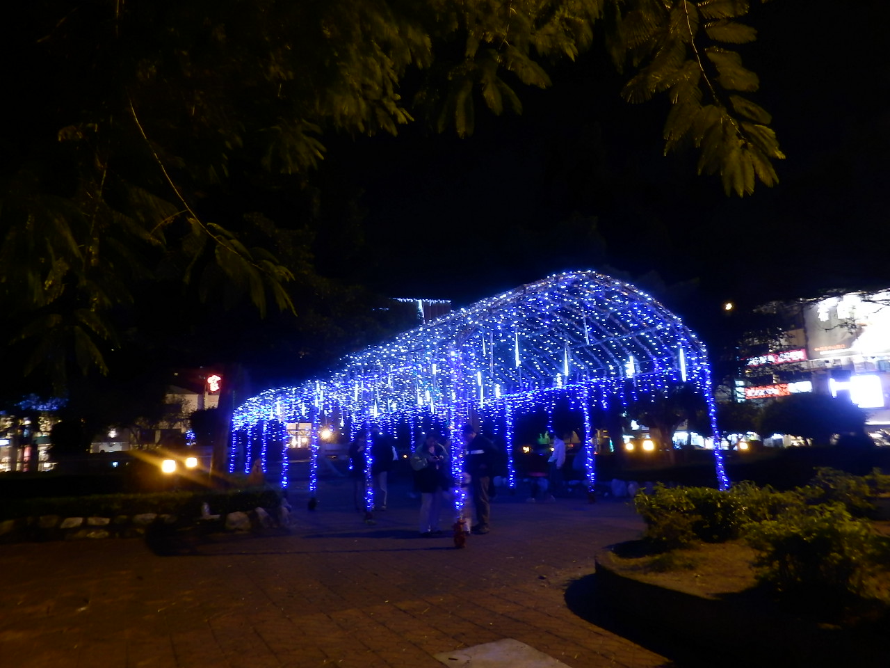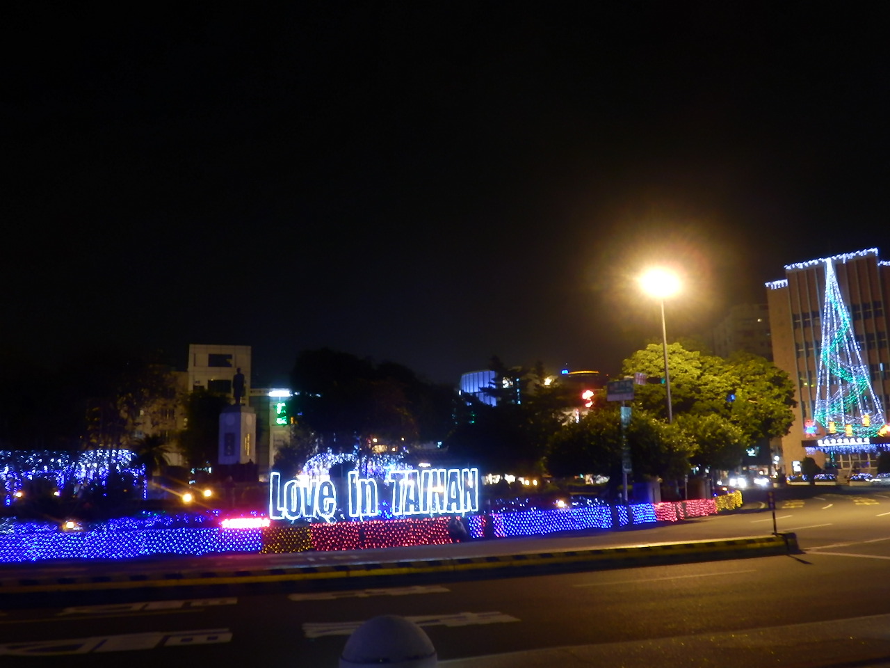 国立台湾文学館に面するロータリー型の交差点の内側にあるのがこちらの公園です。ロータリーは中山路、青年路、開山路、南門路、中正路、民生路、公園路の7つの道路が交差していて、ぐるりと見渡すと日本統治時代に建てられたレトロな建物がいくつか残されています。年末の夜に行ったら、この公園と周囲の建物にはライトアップがされていました。ロータリーは交通量が激しいため渡るのは困難ですが、公園内は芝生の広場で孫文の像がありました。