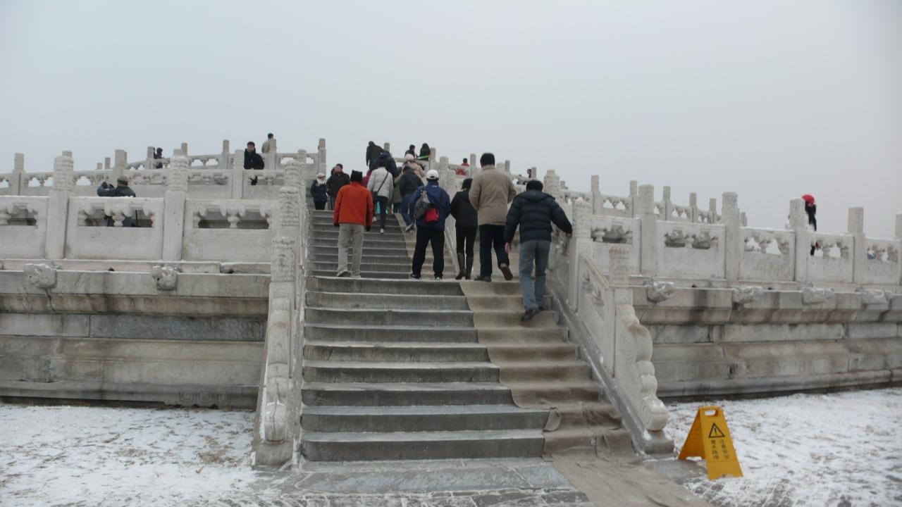 北京の観光は冬はすごい寒いし、道が凍ってます。