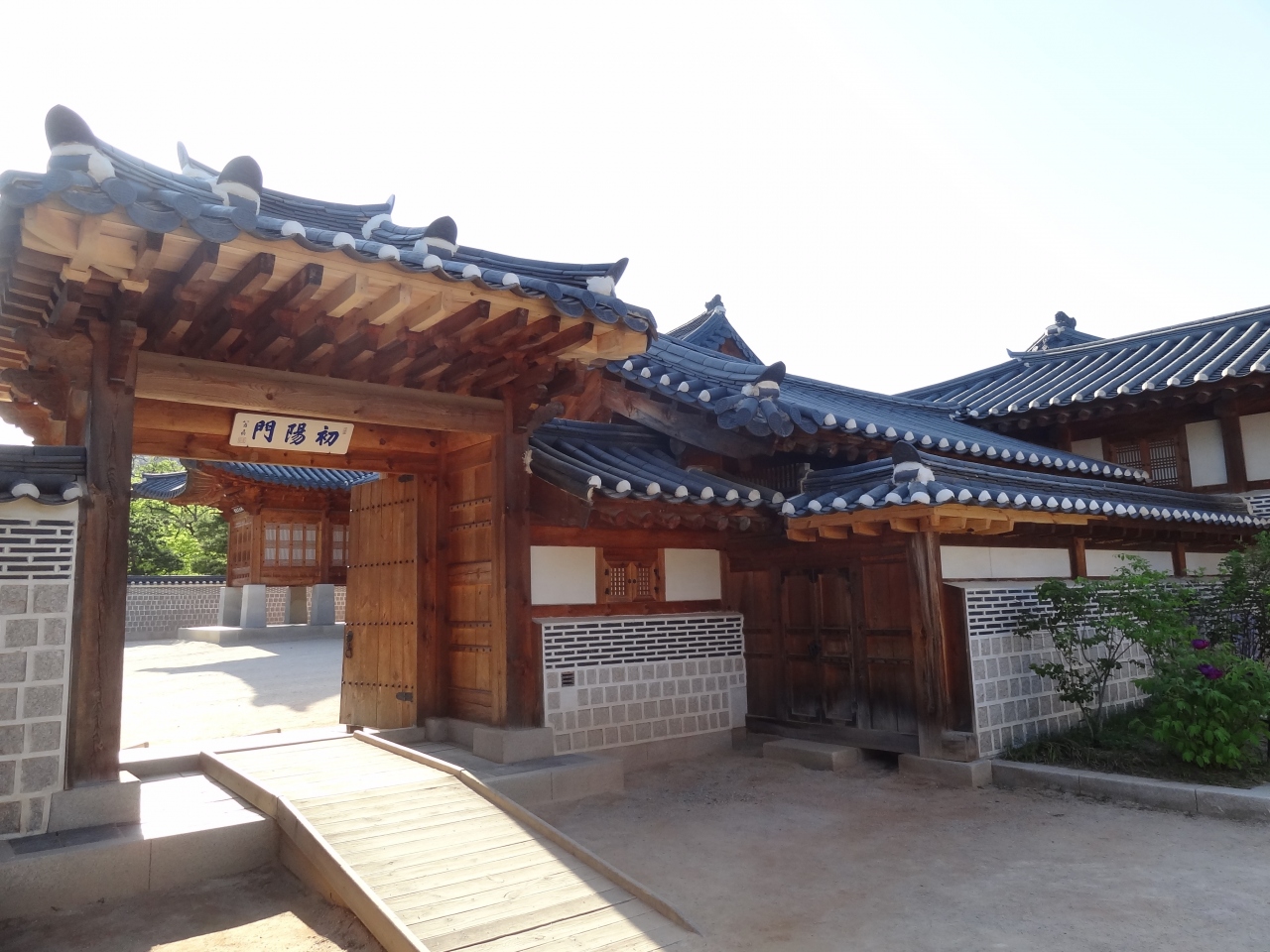 李朝正宮・景福宮、北にある乾清宮の中にある小門が‘初陽門’南側にあります。男性の居住区(西)と女性の居住区(東)を隔てるような構造の乾清宮、その往来に使われたようです。彩色されていない木造建築の乾清宮と調和のとれた木の風合いを生かした落ち着いた雰囲気の門でした。