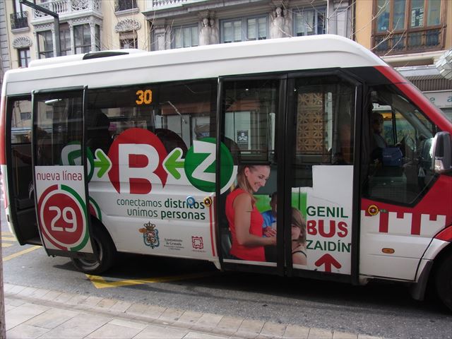 グランビア~アルハンブラ宮殿を結ぶ30番バスは便利ですがミニバスなので座る席は少なく、観光客でいっぱいです。運賃1.20ユーロ。