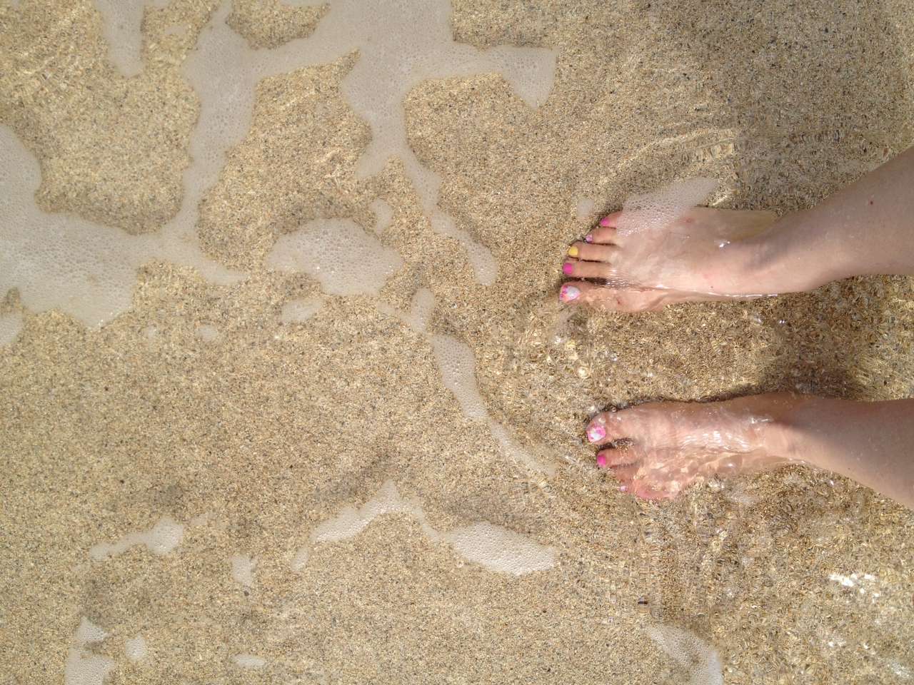 ロイヤルハワイアン側からいくと、狭い遊歩道を通ることになります。