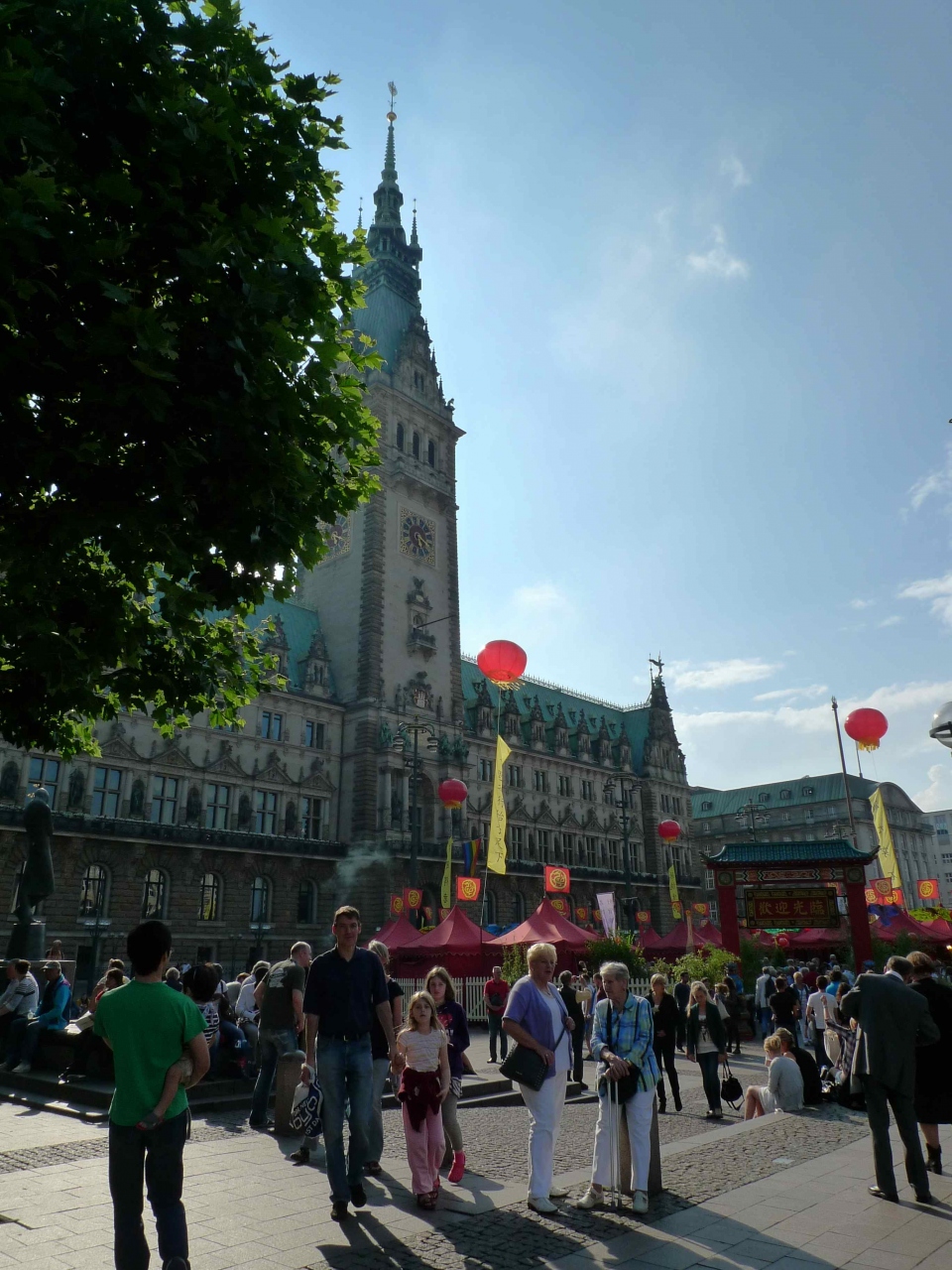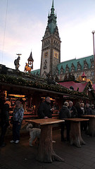 「部屋数は647、英国バッキンガム宮殿よりも多い」という自慢はよく聞きますが、まぁそれはそれとして(笑)毎週日曜日になると市庁舎前広場でなにかしらの催し物が開かれているのが楽しいです。クリスマスの時期にマルクトがひらかれるのもこの広場。ドイツのなかでも異文化にやさしく、人にやさしい港町ハンブルクならではのイベントが見ものです。