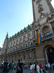 エメラルド色の屋根が目印の、ハンブルクっ子に愛されるランドマークです。ドイツの市庁舎にしては新しめ、19世紀に建てられた建物です。