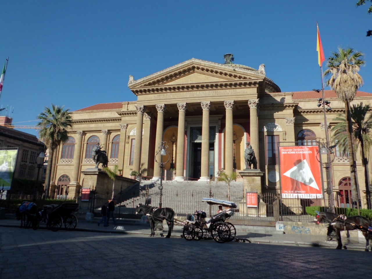 この劇場を舞台とした最も有名なシーンは、おそらく劇場内の舞台で演じられたどんなオペラでもなく、劇場の外側の正面の大階段で撮影された「ゴッドファーザー」のラストシーンではないでしょうか。観光用の馬車が良い雰囲気を出しています。