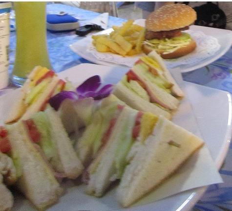 トムヤムクンスープ、エビの炒め物、BLTサンドを頼みました。