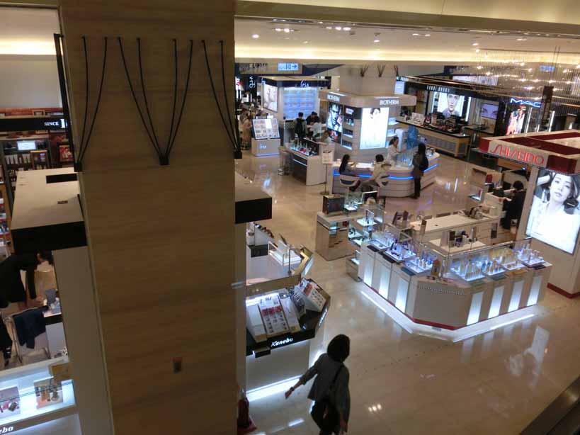 化粧品売り場は、まるで日本の百貨店をそのまま移動してきたような造り。