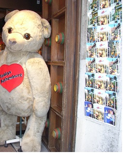シュタイフのテディベアはお高いですが、お手ごろな20ユーロくらいのくま(無名なメーカーなんでしょうが)もいました。