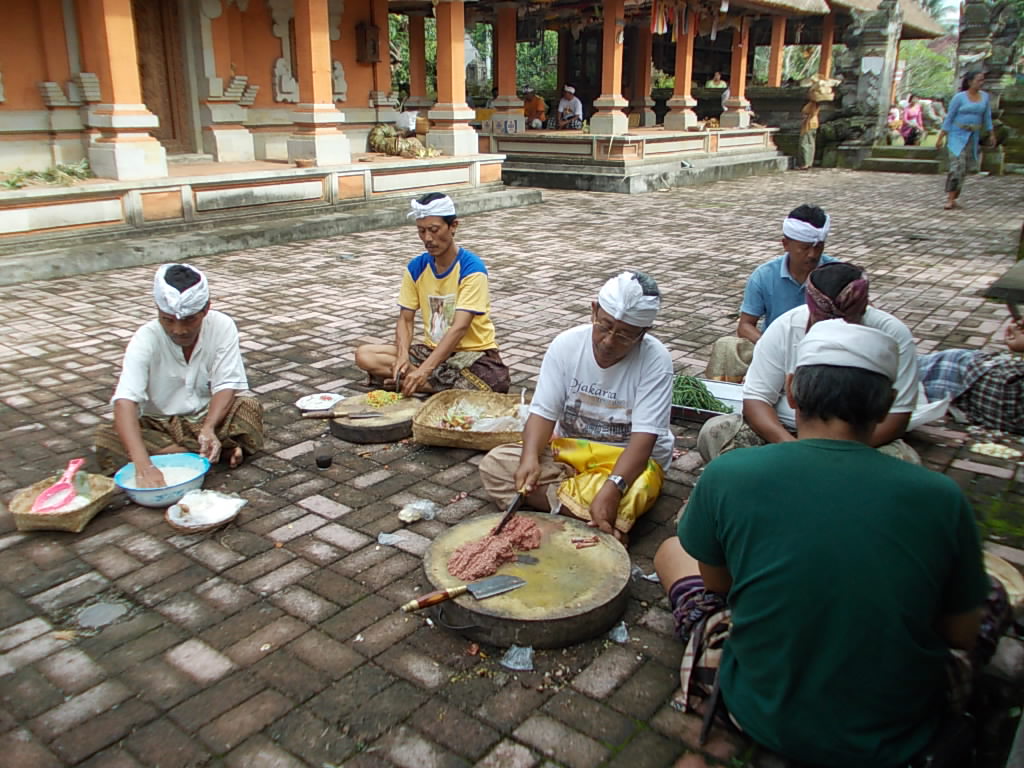 バリで2番目に大きい寺院だそうです。ニュピの直前にいったことで、現地の方がニュピの準備をしている様子をじっくり見させてもらい、ガイドさんのはからいで、一緒に写真をとってもらえました。男性、女性に分かれて作業しており、女性は草で何かをつくっていて、男性は肉を切っていました。寺院の奥にはたくさんの塔があり、噴水などもあって、見所たっぷりでした。ただし寺院の中には入れません。