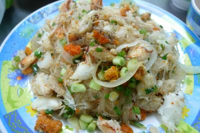蟹と春雨の炒め物、蟹チャーハン、蟹まるごとフリッターを注文しました。