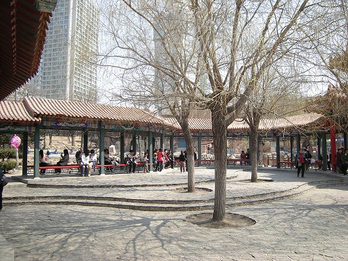 他には「金魚の釣り堀」、水でぬらした筆(スポンジ)で地面に文字を書く「水書道」なども見られ、ある意味中国らしさが凝縮した場所とも言えます。