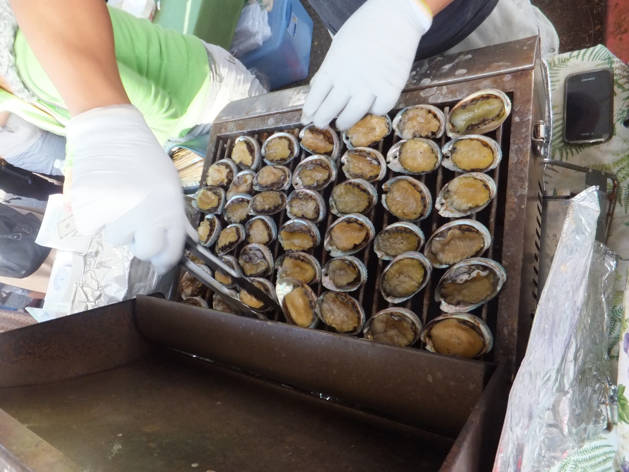土曜日8:30くらいに行きました。レンタサイクルで行きました。売り切れているものはありませんでしたが・・・めちゃくちゃ混んでました。ほぼ日本人です。美味しかったのは、あわびとモヒートです。あわびは、ハワイ島直送のようです。他の食べ物は・・・うーん、街中で食べられるような気がします・・・。トイレがかなり汚かったのが残念。