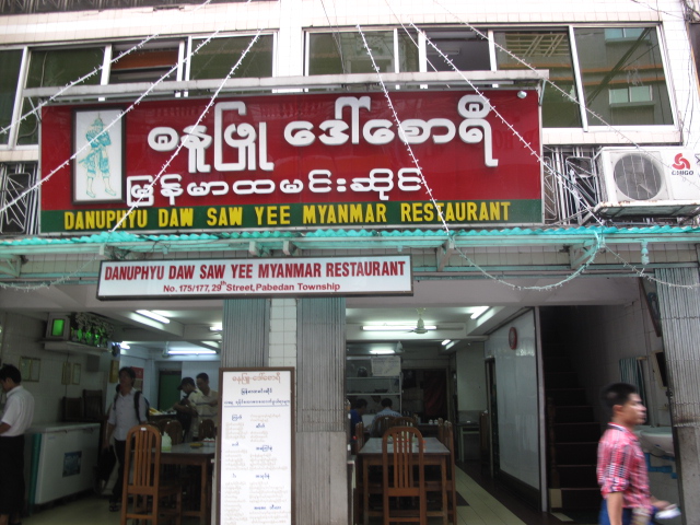 期待しすぎて行った為か、普通のビルマカレー屋さん。表通りのShweBonthaStから東側に一本入った裏通り。店の人は日本人に慣れていて親切だったが、敢えて行く必要もないと思った。生野菜大量で食べれず。