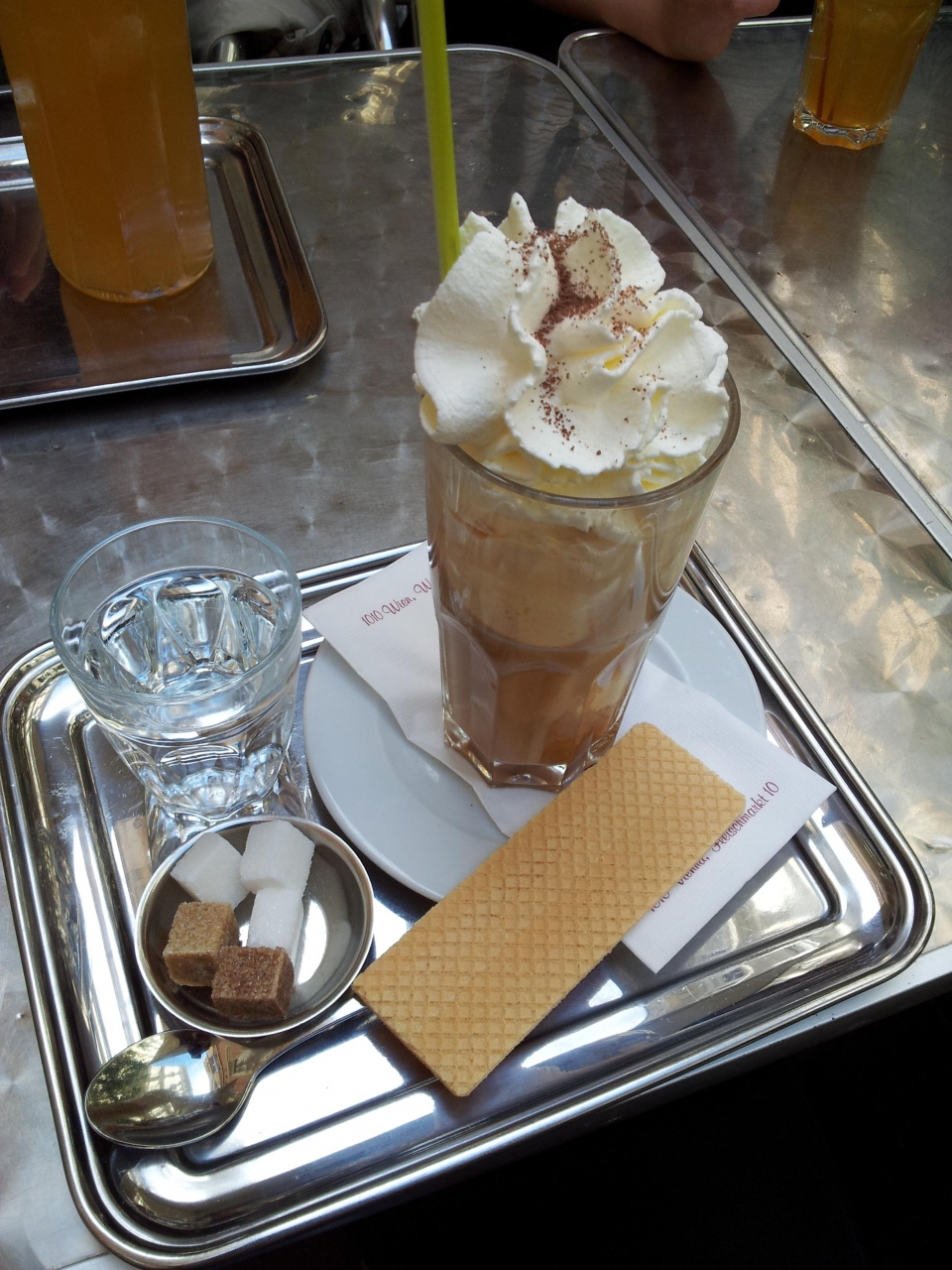 朝食をカフェで食べ、昼食までの間にちょっと時間が出来てしまったので、歩き疲れたこともあってこちらのカフェに寄った。表通りから小道に入った所にあるので、人通りは多いものの店内は静かだった。ただ季節柄テラスがよかったので、他の人々同様外の席を選んだ。ランチメニューを食べている人が多く、美味しそうだったので次回は試してみたい。
