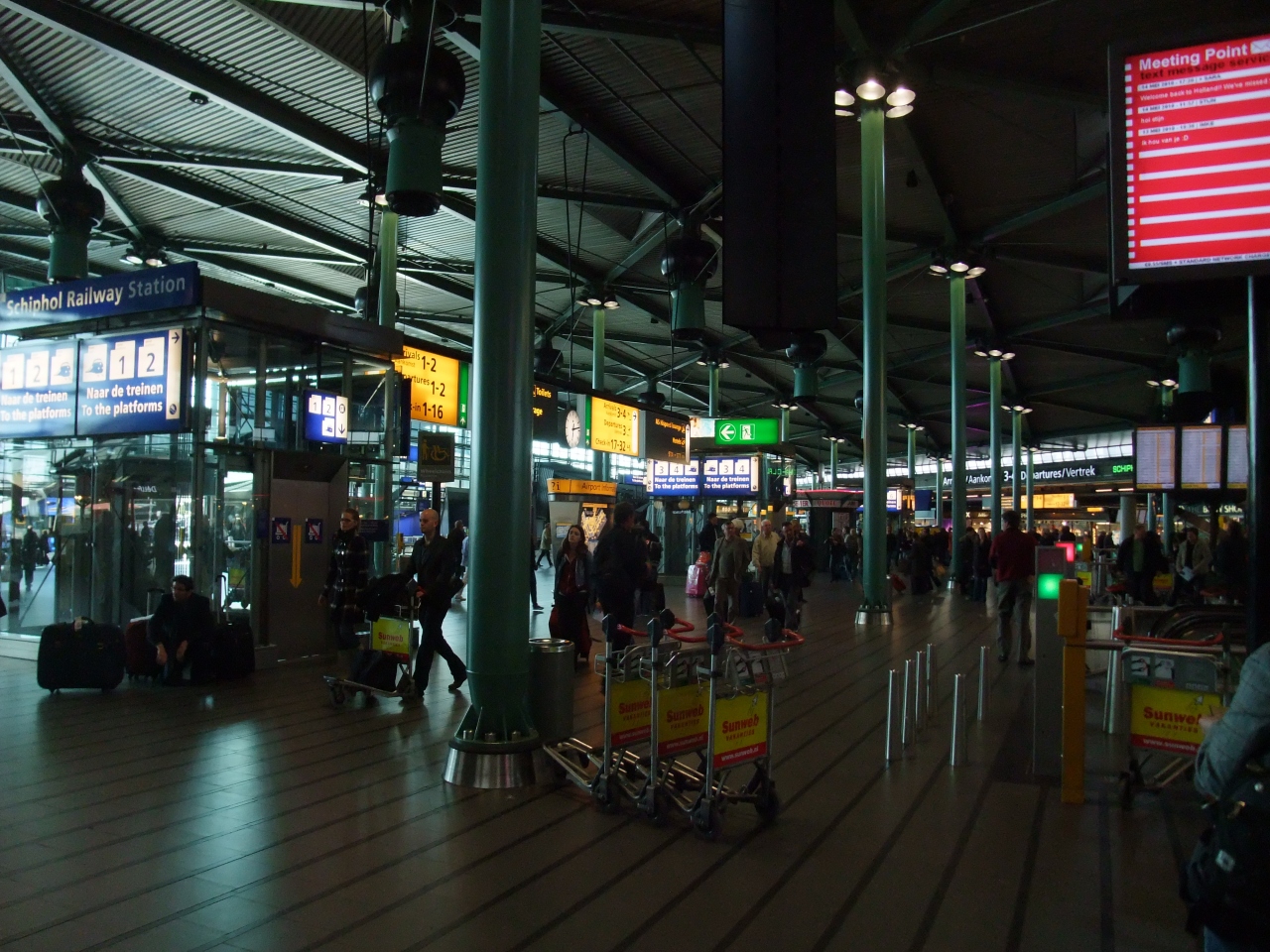 乗り継ぎに利用しました。今は廃止になってしまいましたが、成田-スキポールに乗ったときです。天井が高く、また、表示が見やすく、便利な空港だなと思いました。KLMオランダ航空の飛行機のエンジンがドーンと置いてあるのには、本当にびっくりしました。