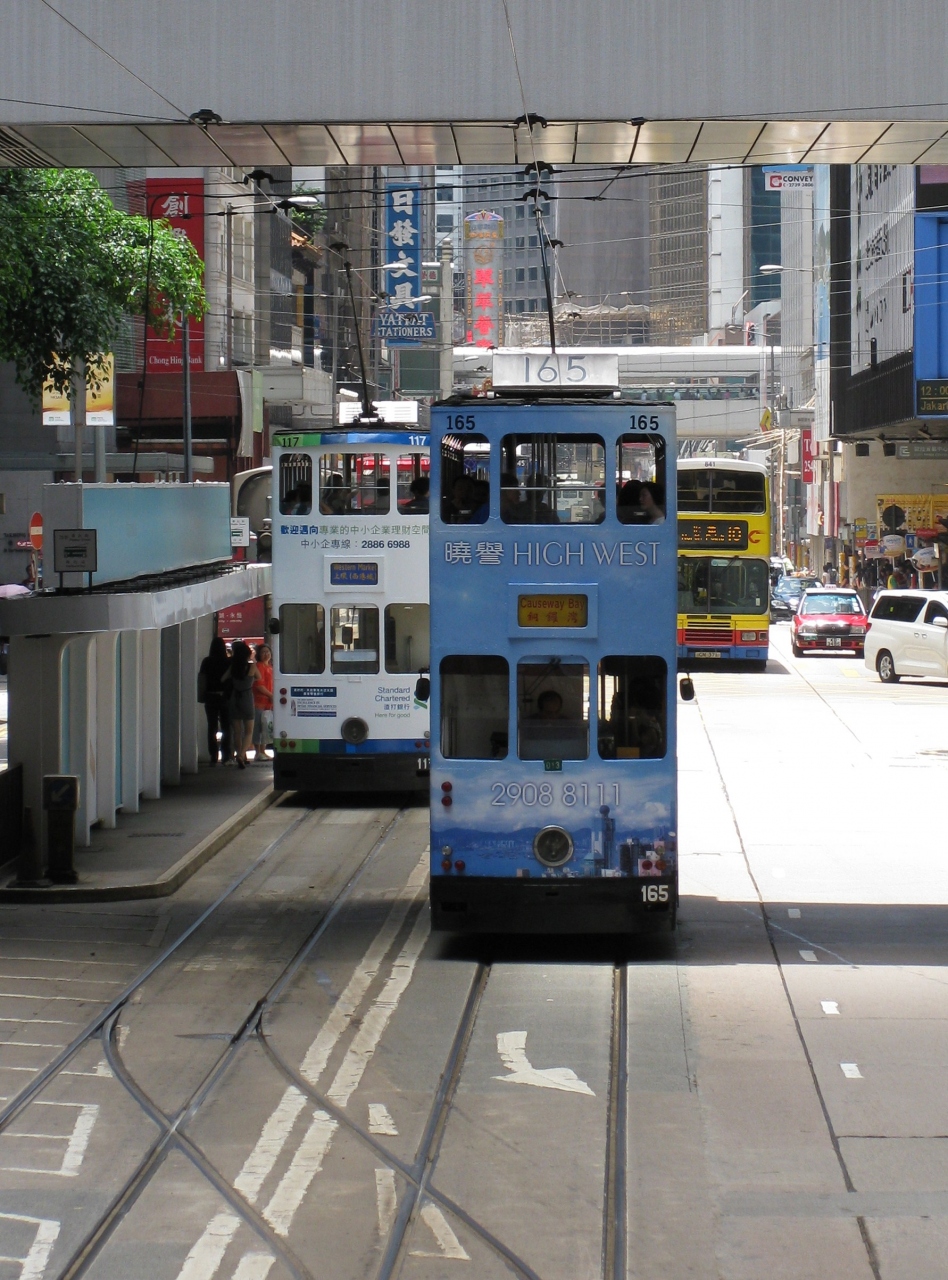 混んでいたり渋滞に巻き込まれたり、立て続けに2・3台いっぺんに来たりしますが、トラムに乗って2階席からガタゴト香港の雑踏を眺めると香港に帰って来たなと実感します。