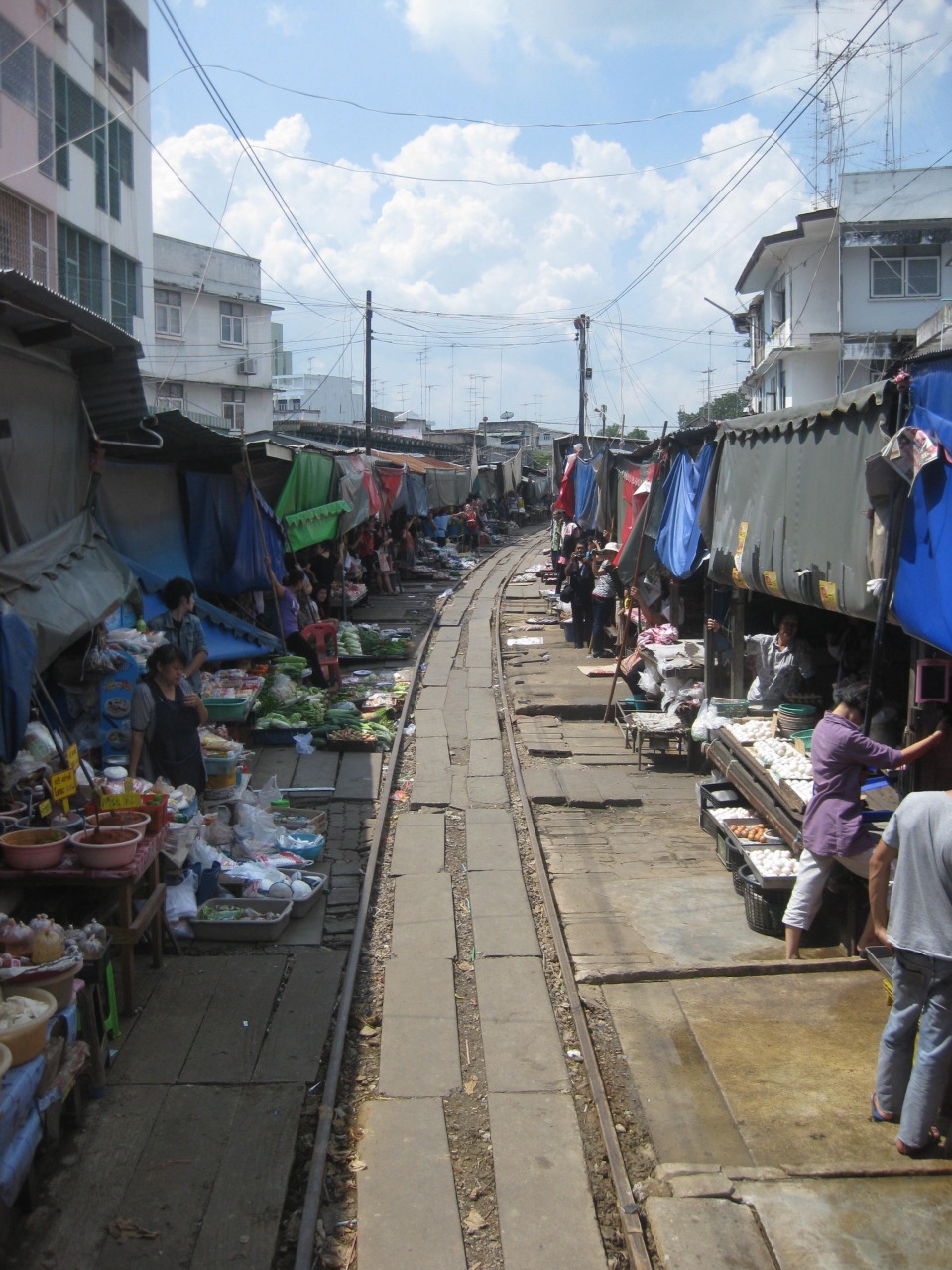 線路上に広がる市場