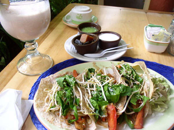 私がオーダーしたスムージー、ベジタブルタコスどちらもおいしかったです。
