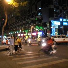 旅行中何度も通りました。とにかくバイクの数がすごく、人ごみも多いです。信号を渡るのも一苦労でなんどもひかれそうになりました。夜のイルミネーションがきれいで、いろんなパターンで写真をとりました。有名なおしゃれなホテルやお店がいろいろあるので、結構寄り道をして自分たちのホテルまで戻るのに時間がかかりました。