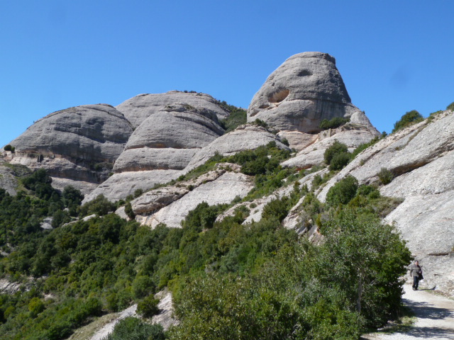 モンセラート修道院からは、さらにケーブルカーで上に登り、サンジュアンまで行くことができます。非常に急勾配のケーブルカーです。上の駅からは3つぐらいのハイキングコースがあります。私はサンジュアンに行く一番短いコースを選びました。往復で40分ほどですが、岩を含めて眺めが素晴らしい道です。晴れていれば特に危険な感じの道ではありませんが、一応山道なので、それなりの靴を履いていった方が良いでしょう。お蔭様で天気にも恵まれて最高のハイキングを楽しめました。