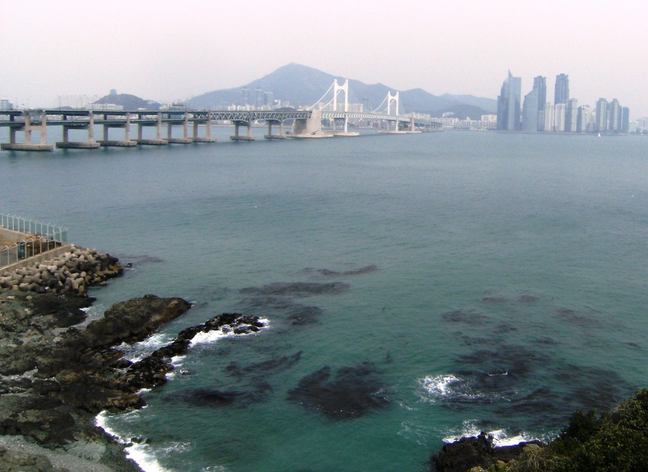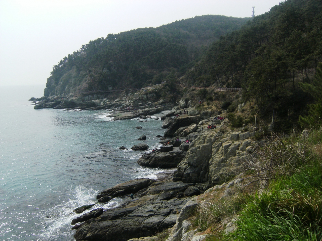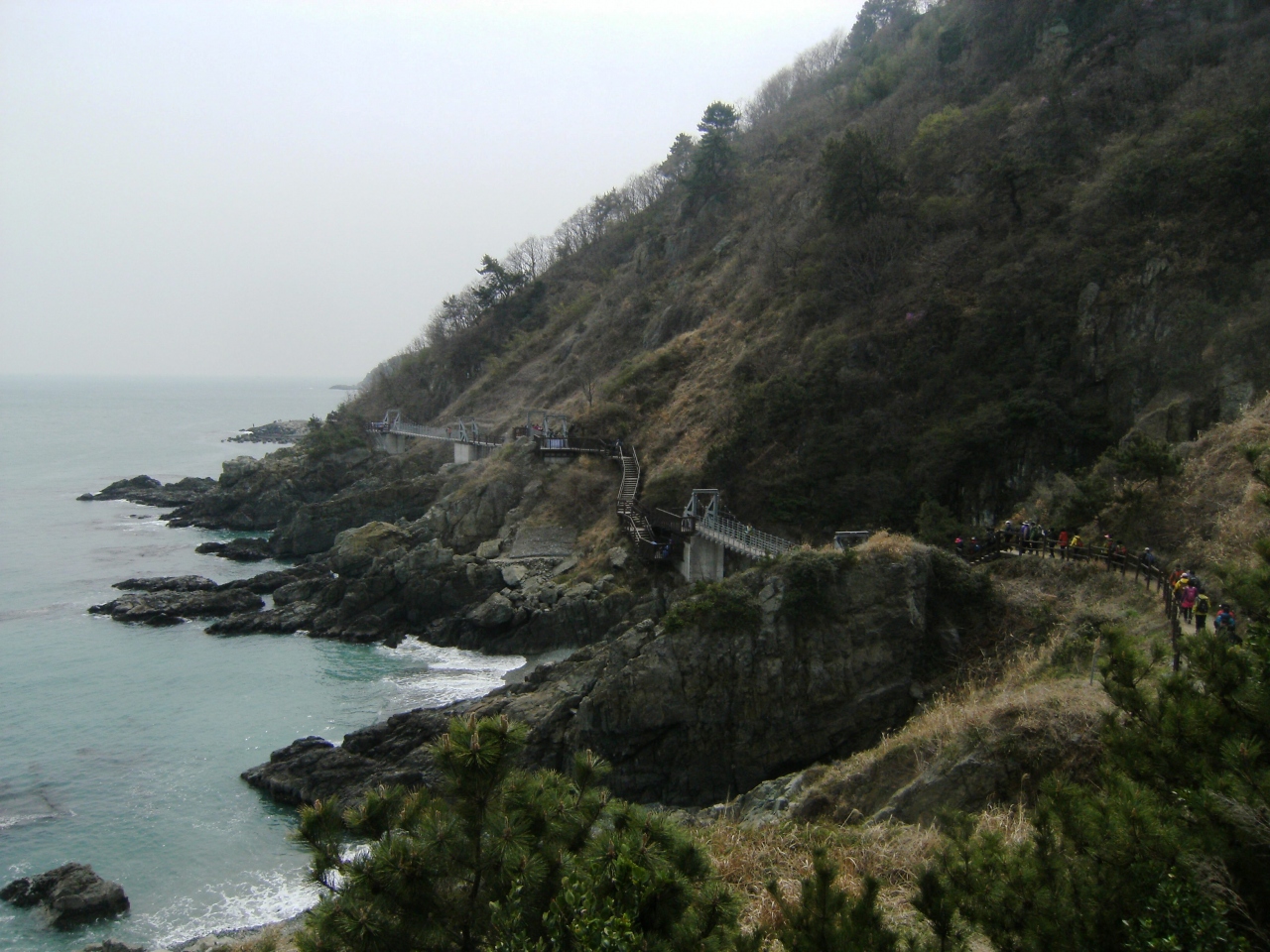 これは釜山市内を縦横に走る歩道であるが、特にお勧めは第二コ−スと言われる五六島遊覧船乗り場からトンセンマルまでの断崖の道で、約5キロの区間。右手は断崖絶壁の、森林の中の遊歩道で、桟道となっている部分も多く、比較的に歩き易い。但し、若干のアップダウンは覚悟。手軽に歩ける自然豊かな遊歩道で、途中の気に入った岩棚で持参した弁当などでのピクニックが楽しいと思われる。