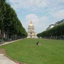 礼拝堂の金色の丸屋根が目印、パリを代表する建物の一つです。軍事博物館とナポレオンの棺が置かれた礼拝堂がありました。エッフェル塔やシャンゼリゼ界隈・美術館・寺院はどこも人だらけでしたが、ここは割と人が少なく穴場かもしれません。