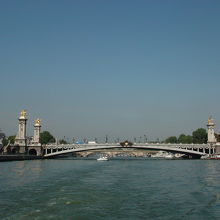セーヌ川にかかる橋はいくつもありますが、一度観たら決して忘れない個性的かつ美しい橋でした。両側に金色の彫刻、華やかです。アレクサンドル三世橋と背後にそびえるエッフェル塔の姿‥画になる風景、最も印象に残る橋。