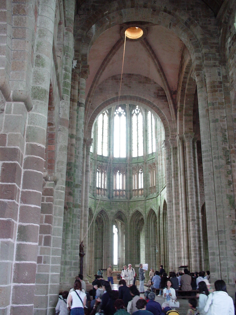 パリからの日帰りツアーで行きました。バスを降りて階段・坂道をひたすら上ると到着。モンサンミシェルの中枢となる修道院。神に仕え祈りをささげる場所、派手さはなく質素で落ち着いた雰囲気。人ごみの中をずっと歩いてきたので、静寂と荘厳がより感じられました。