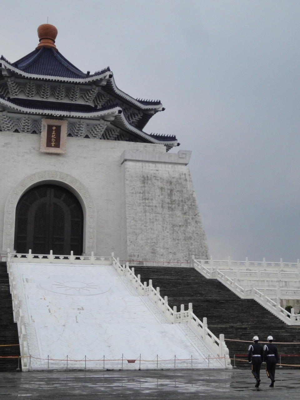 衛兵の交代式が有名なこちらのお堂。ホテルから近かったので早朝のお散歩をしに向かいました。幸運にも朝番?の衛兵さんが行進しているところに遭遇。早朝でほとんど人がいなかったので、衛兵さんが紀念堂へ向かう素敵な写真が撮れました。広場には畳まれた屋台が並べてあったので、観光客であふれる時間帯にはおみやげ物の物色も楽しめそうです。