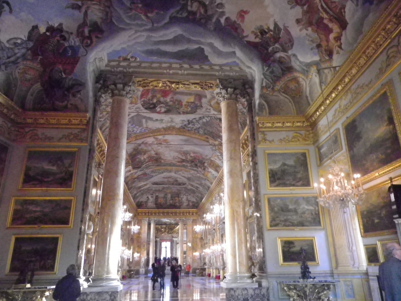 貴族の従者のユニホームを着た老紳士が、「マダム、大変申し訳ございません。こちらはお座り頂けません。観光のお客様はあちらにお座り頂けます。」という感じで、新し目のソファーを指差して優しく教えてくださいました。お行儀が良いって言うか・・ちょこっと嬉しかったな。