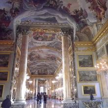 映画ローマの休日のラストシーンで、王女アンの記者会見会場に使われた部屋です。
