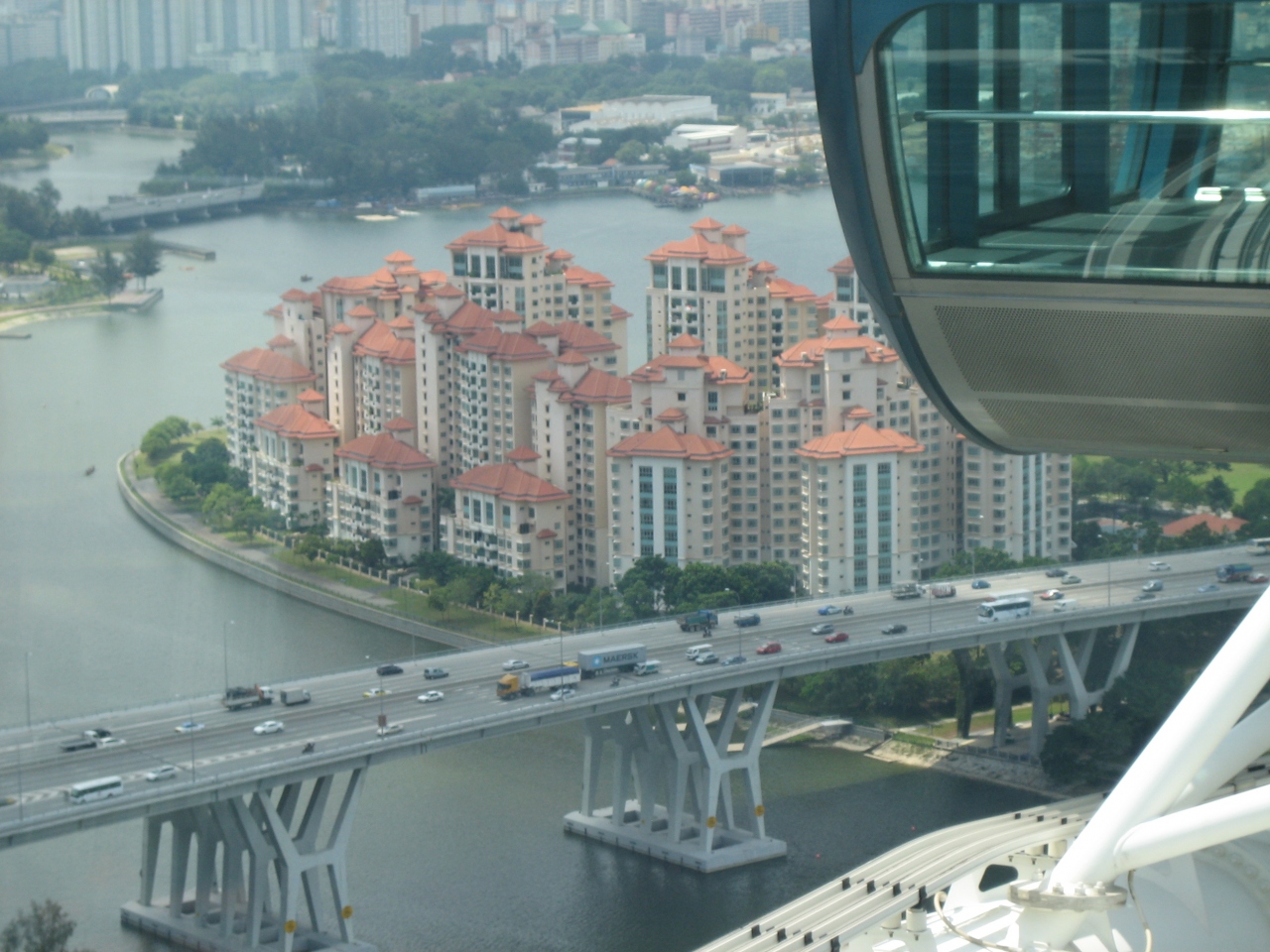 30分以上待って、韓国人の団体の中に私達家族だけ日本人という状況で、一つのゴンドラ(かなり大きい)に乗せられて、ぐるっと一周しましたが、四方八方ガラス張りなので、見晴らしが良いから楽しいですね。