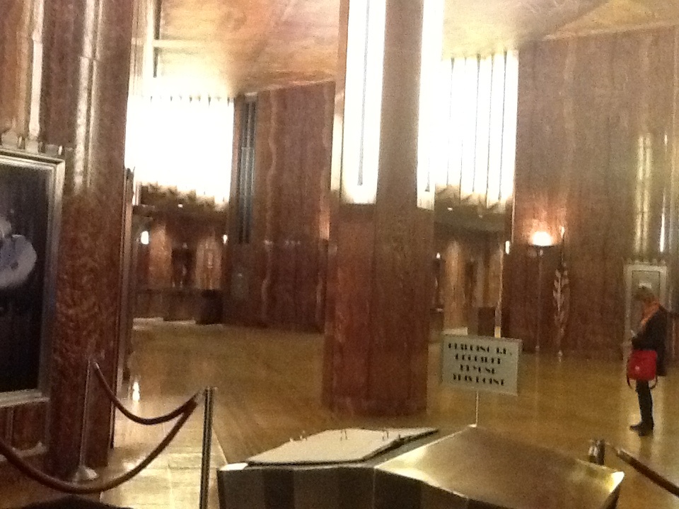 グランドセントラル駅の隣りにある魚のうろこのようなビル、クライスラービル。私が行ったのは金曜日の7時前位だったので中には入れませんでしたが、警備員のお兄さんに聞いたら、月曜日~金曜日の8am~6pmは中に入れるそうですよ。