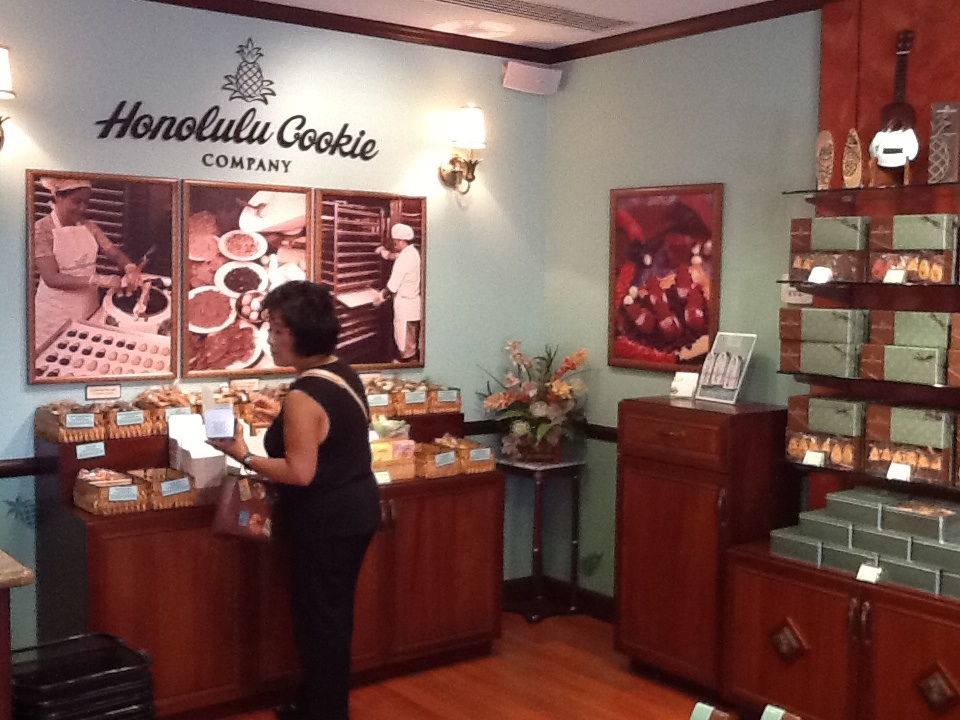 カラカウア通りに何軒もあるクッキー屋さん。味も非常に美味しく、内装も外装もパッケージも可愛いのは当然、このお店は全部の種類のクッキーを試食できるのが最大の魅力です。そして何と試食をして喉が渇いたら飲むようにフリーの水のタンクが設置してあるという手厚さ。最高です。
