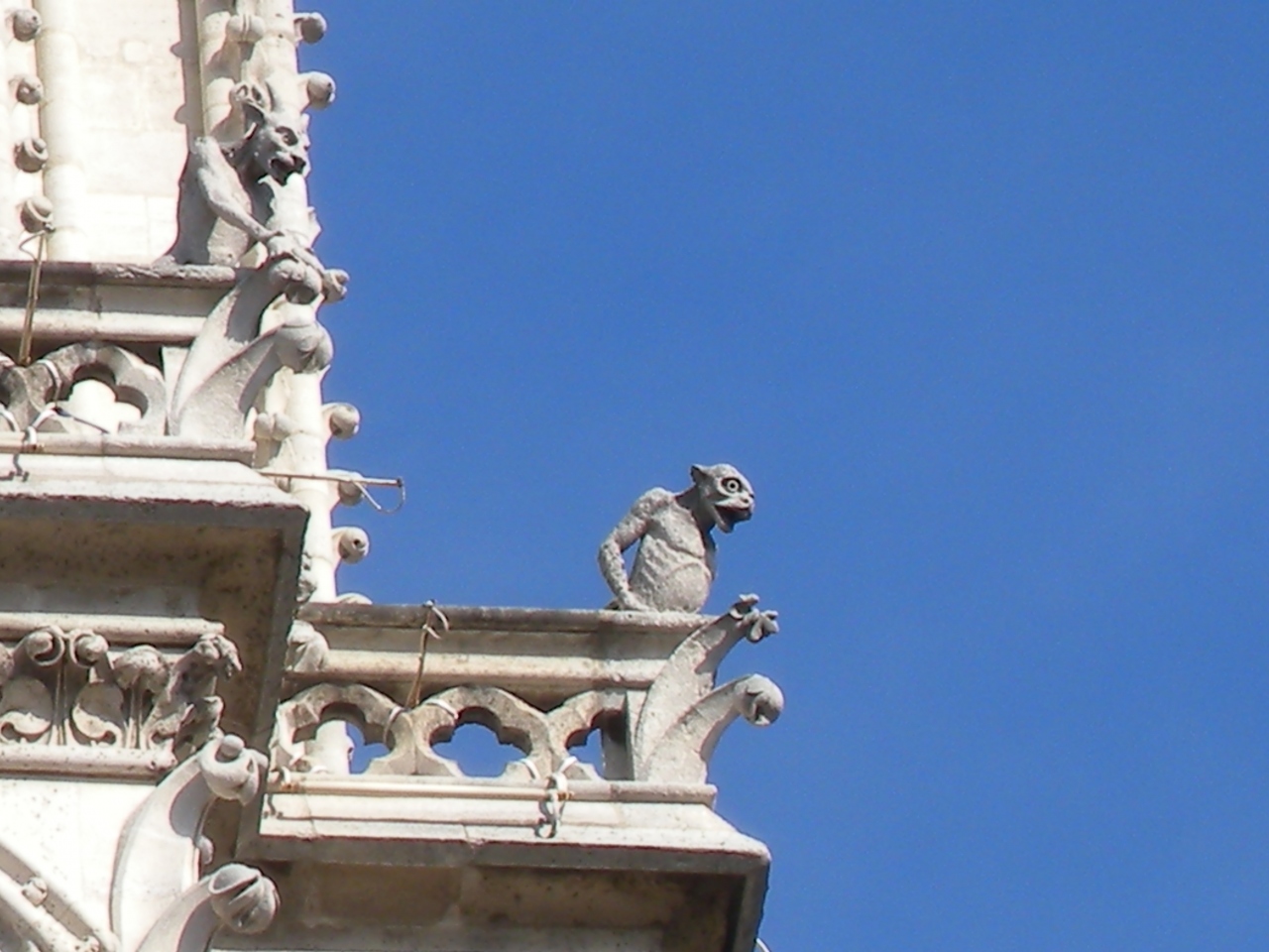 ノートルダム大聖堂では、ほおづえをついているガルグイユを撮りたかったが見つからず。後日引きで取った写真を拡大すると、正面から見て左側にいらっしゃいました。午後だったので太陽の位置から右側が目立っており、右側ばっかり写真を撮っておりました。