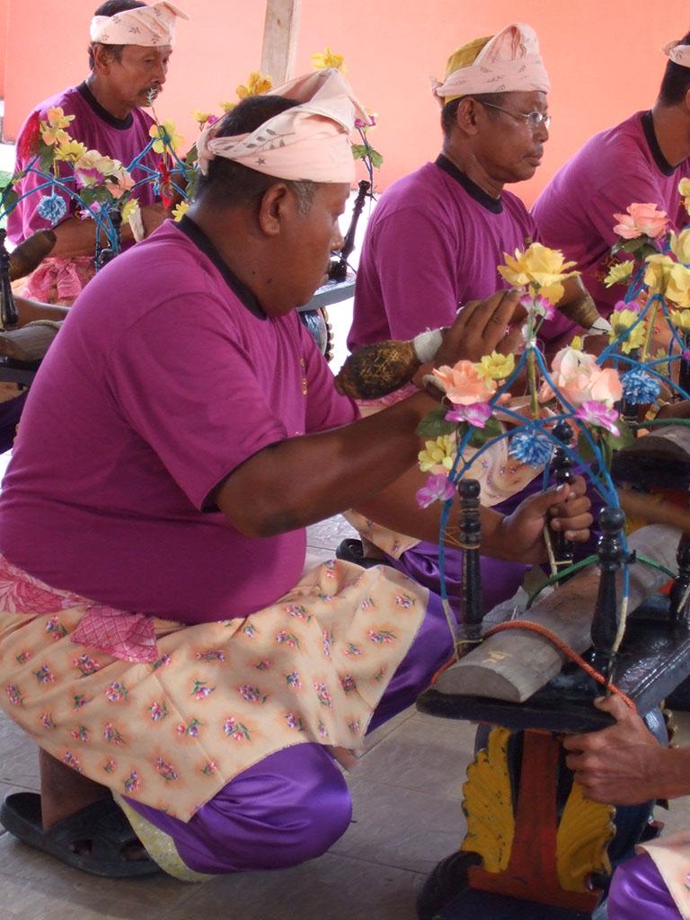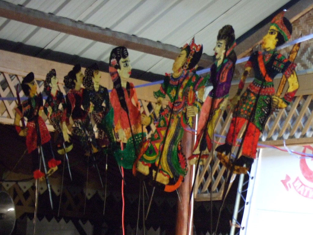私たちは午後からの楽器演奏と武芸、手描きバティックの実演販売などを見てから、一旦夕食に出て、夜、影絵芝居を見に戻りました。日によってはマレー独楽などもあるようです。昼間のショーは、中々見応えがあり、マレー・レスリングなどは本当にナイフを使ったりするので迫力がありました。