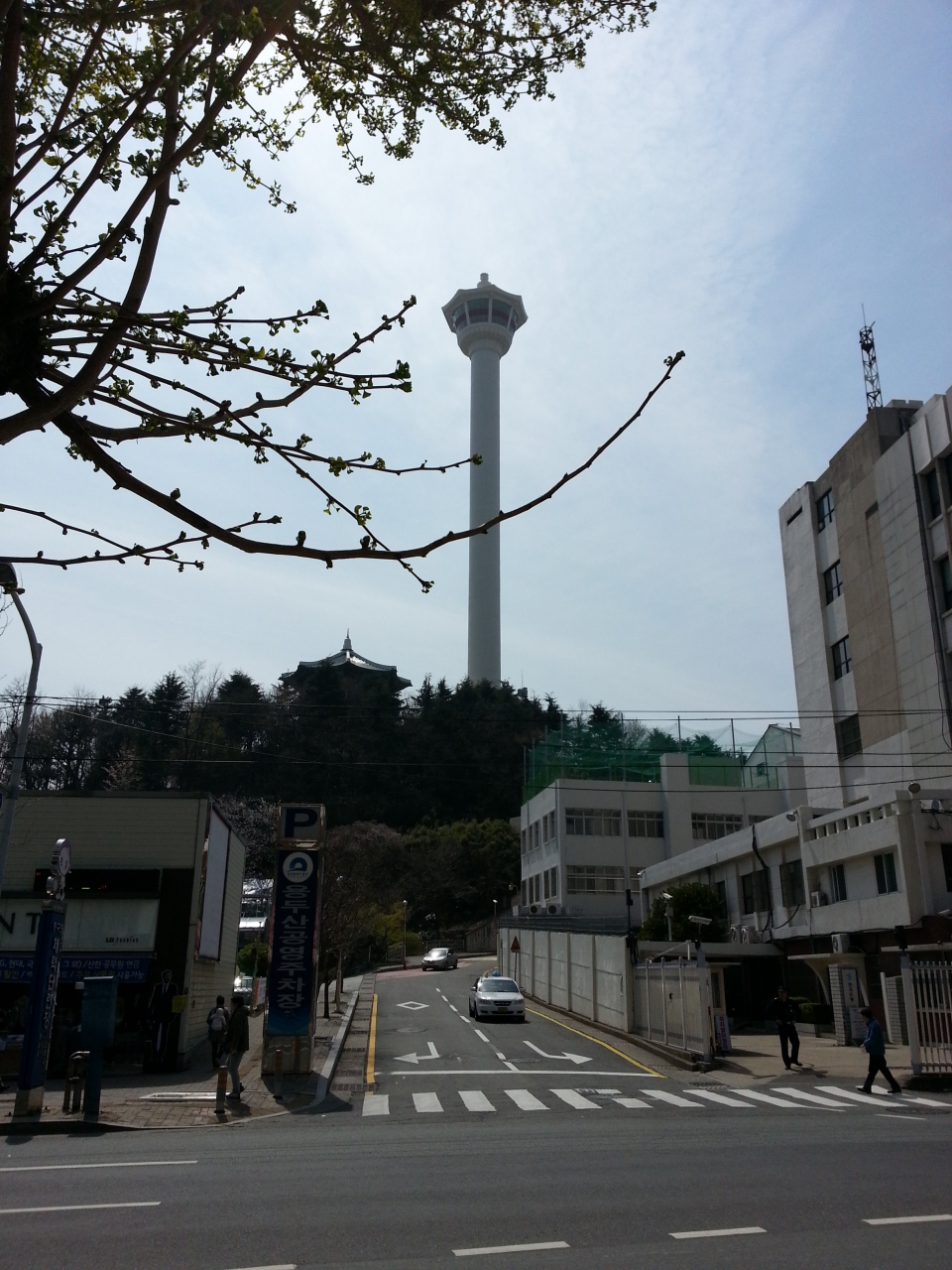 西面からチャガルチに地下鉄できました。観光名所のシャガルチ市場、国際市場をのぞいて、散歩がてら龍頭山公園に来ました。釜山のランドマーク、釜山タワーは高さ118mを誇る観光名所です。西には街並み、南側は釜山港、東側は釜山駅や海雲台方面が見えます。