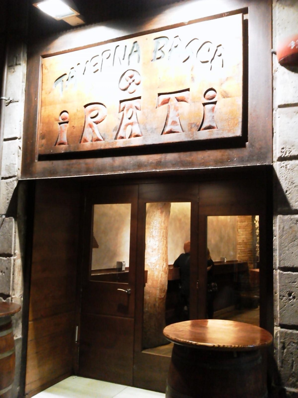 ランブラス通りから脇道に入って行くときに、急に人通りが少なくなり薄暗い感じになったのでちょっとビビりましたが、お店は看板がスポットライトで照らされていたのですぐわかりました。外から店内も見えるので明るく入りやすい雰囲気です。