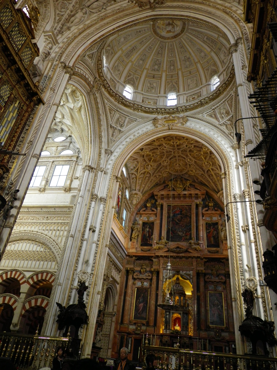 ツアー最終日、明日は帰国、紺碧の空の色、ハワイよりも青い、なぜ?空気が乾燥してるから?雲、一つない・・ここは、入場を時間でくぎっています。ですので、予約の時間が来るまでは、外で、待たされます。この日も風が強かったです。が、中へ入って一変!素晴らしい!スペインは金細工が有名とは聞いていましたが、これ程すごいとは・・そして、あのエル・グレコの作品やゴヤやルーベンスの絵もありました。とにかく大きい、広い天井の高さも半端ないです。ガイドさんの説明によると、1本1本、柱には名前が書いてあるそうです。