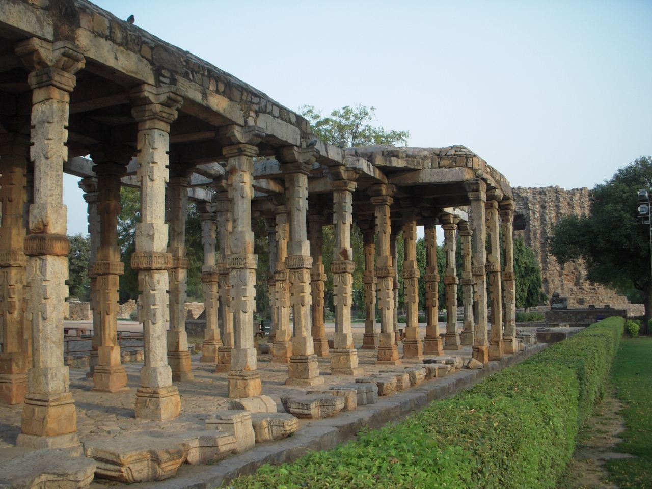 中庭にある高さ7mの鉄柱は3~4世紀に造られたものと言われていますが、鉄の純度が100%に近く、いまだに錆びないそうです。