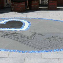 教会の前にはタイル細工があって、とてもかわいらしいデザインなので、チェックしてみてください。