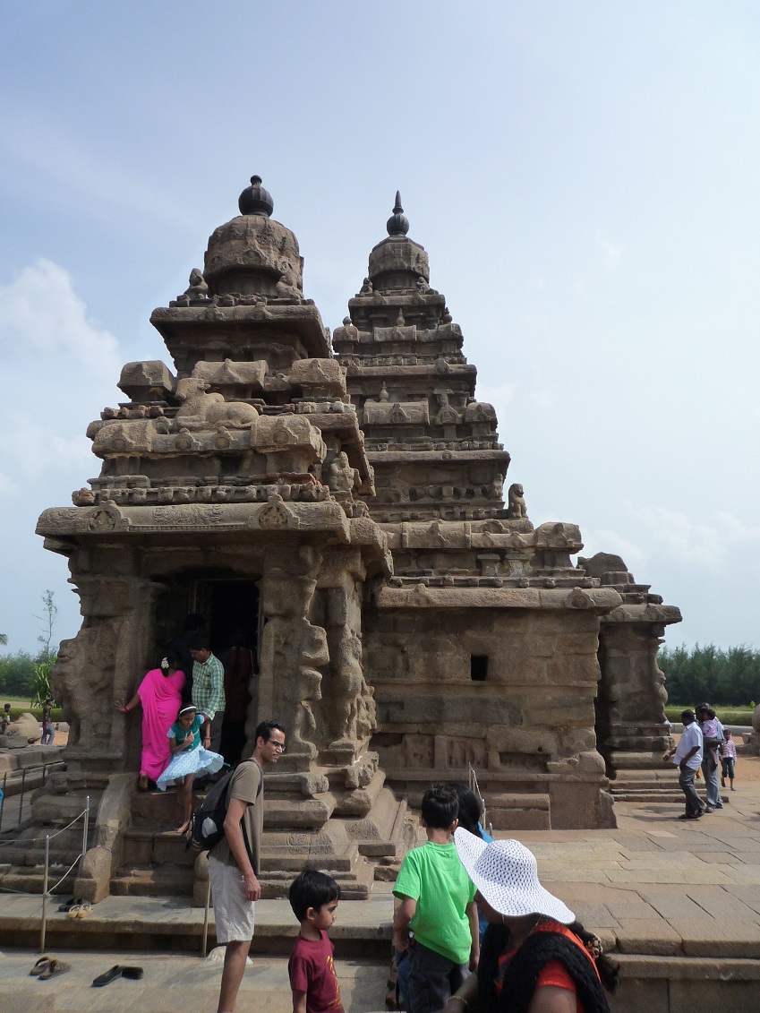 マハーバリプラムにある世界遺産の一つ。1000年以上前に建てられた寺院が、波打ち際にあります。今でこそ現存するのはこの一つだけですが、建てられた当時はもっと、このような寺院があったとか。しかし、波にさらわれてしまったとのこと。唯一残るこの寺院を守るため、周囲は浸食を受けないよう、防風林などで補強されてました。