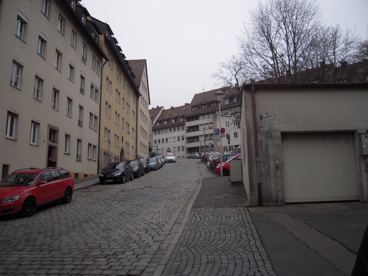 Hauptmarkt中央広場の美しの泉という塔のそばの道を登って行けば真っ直ぐでよかったのだが。