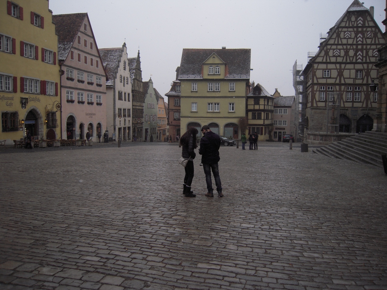 市庁舎と時計台が横と前にあるマルクト広場Marktplatzは、ローテンブルグ旧市街の中心。