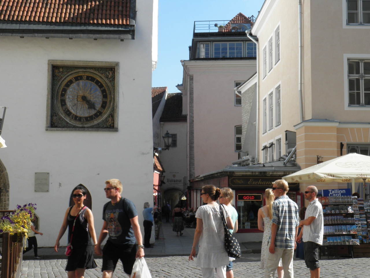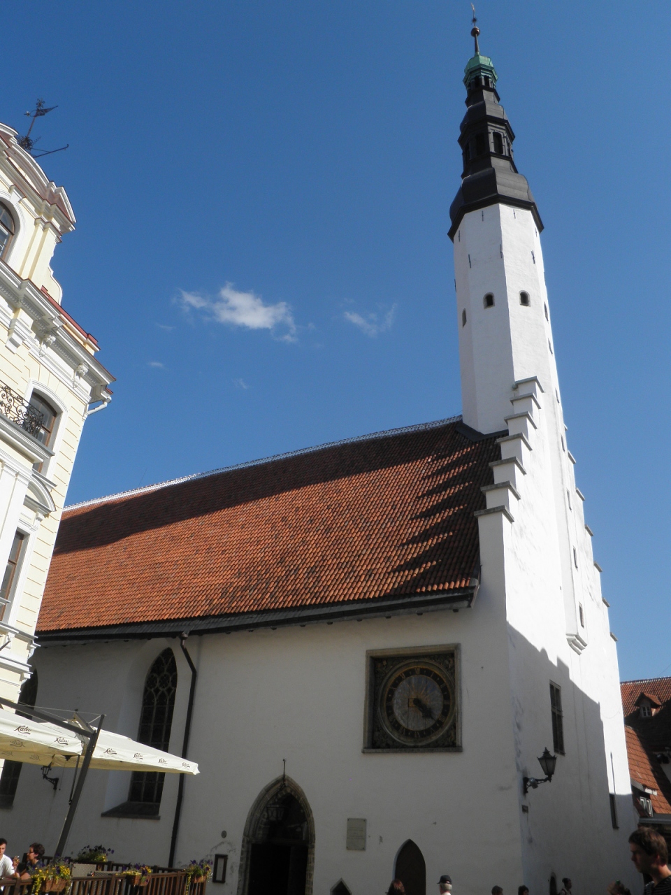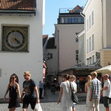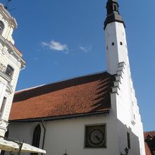 旧市街中心のラエコヤ広場からすぐの場所にある教会です。広場から散策に出て路地を歩いていると、ふと白い壁にとても綺麗な時計があるのを見つけました。見上げると高い八角形の塔があり教会だと気付きます。周りにはおみやげ屋さんやカフェが隣接していて賑やかです。
