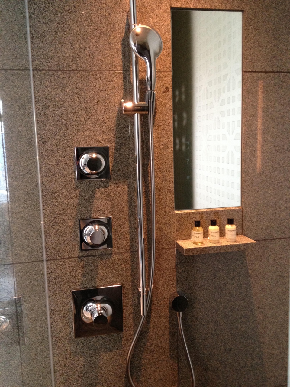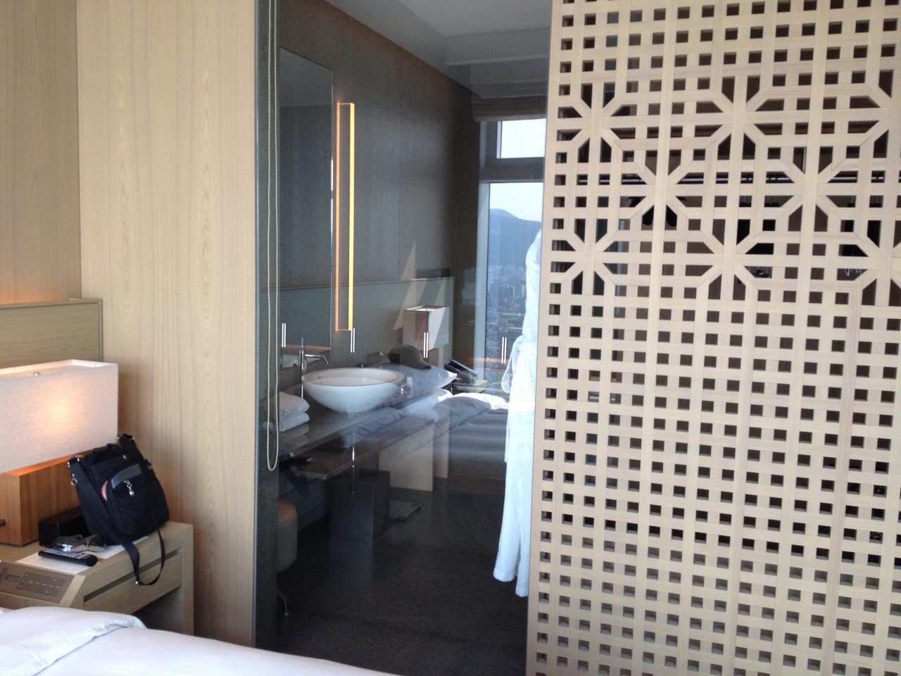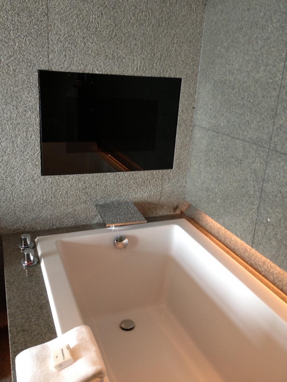 ソウルのパークハイアットで失敗してなくなってしまった浴室の中のTVが、復活していました。シャワーがTVにかからないように、シャワーブースがどの部屋も別になっています。バスタブにつかり、TV観賞が出来ます。