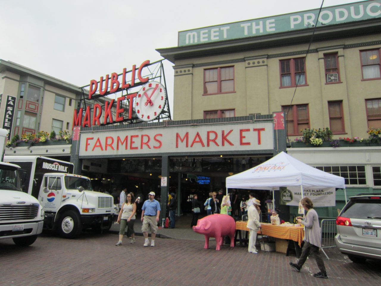 アメリカ最古のマーケットということで、シアトル観光のメインとなるマーケットですが、観光客用という感じで、あまり魅力的なお店はありませんでした。