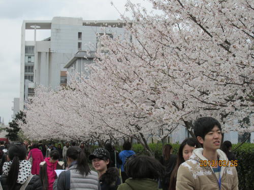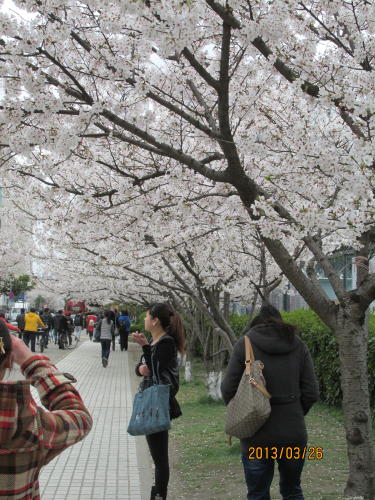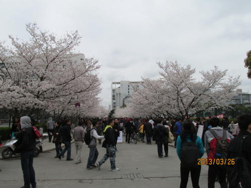 昨年葉桜になったので今年は早目に上海へ来たが日本と同様に更に開花が早まりました。上海の友人から同済大学の桜並木が綺麗だと情報をもらいました。ついでに学食も美味しいから食べてみてと言われやって参りました。上海一の桜並木でした。